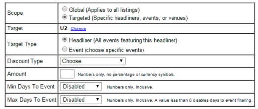 With Targeted Discounts, you are able to target specific headliners, events, or venues.