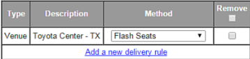 If you are certain that all of your Houston Rockets home games will be Flash Seats, along with other inventory that you possess for this venue, you may set a venue delivery rule: