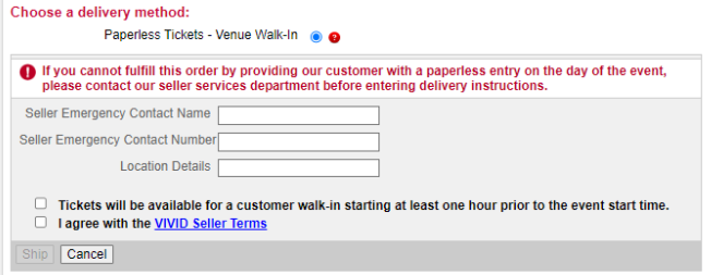 For an update to Account Surrender, the Seller must send Vivid Seats a Delivery Method Change request to Special Delivery. The buyer will then need to accept the updated Delivery Method and the seller will fill out the following information in the Broker Portal.
